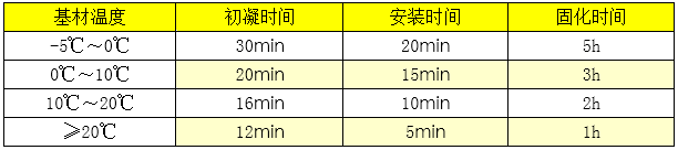•按照推薦比例配膠,比例為A:B=20:1,25℃可操作時間為5-10分鐘。隨著B劑用量的增加,可操作時間相應(yīng)縮短。每次配膠量不宜過大,以在可操作時間內(nèi)用完為準(zhǔn);